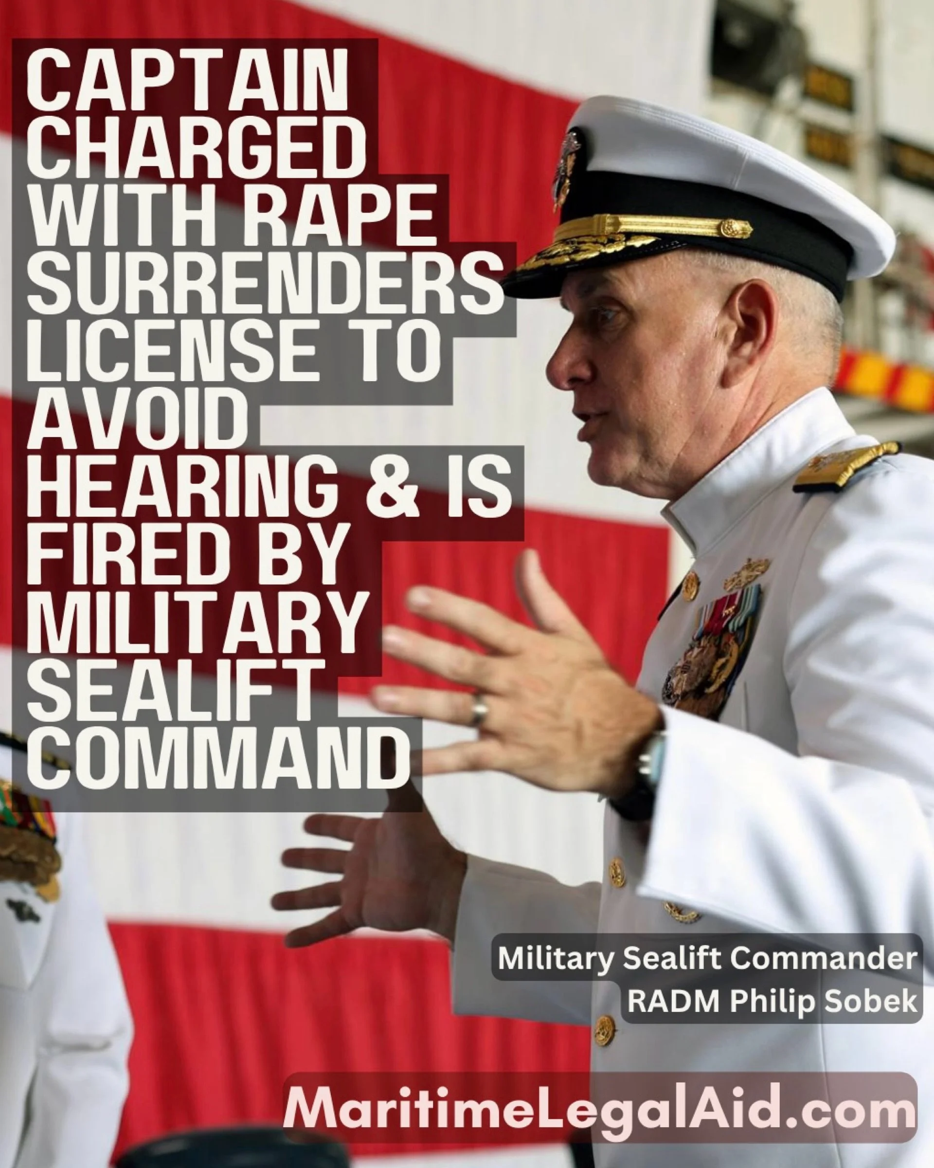 “I’m relieved that he was removed from command and that I no longer have to live in fear of encountering him again within my workplace,” she said. “I’m also relieved that he no longer holds a license and cannot continue working in the industry or put others at risk.”