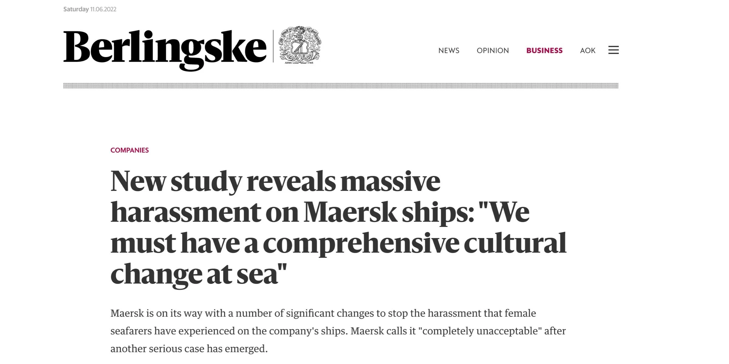 It looks far worse for the female sailors on the Maersk ships than previously thought. A new comprehensive study of women's conditions shows that there are major challenges with harassment, and Maersk is now on the way with a string of changes.